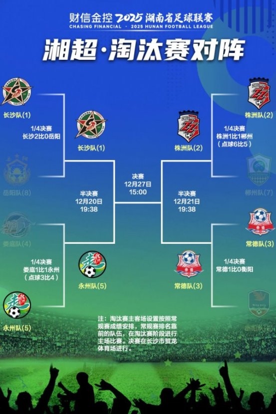 湘超半决赛(4强淘汰赛)本周末开踢 长沙VS永州 株洲VS常德