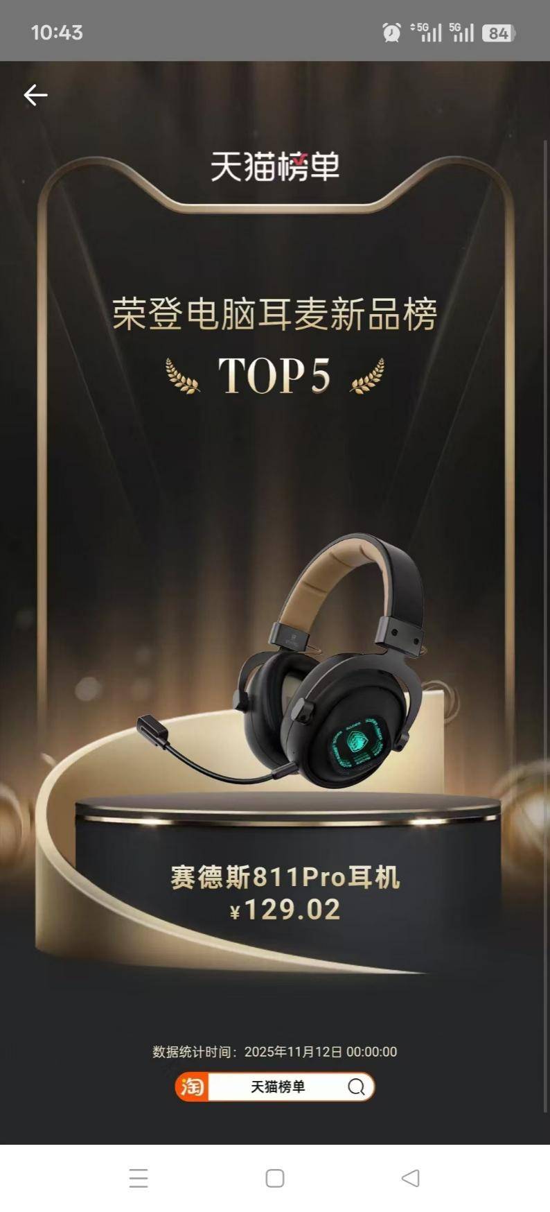 能够在竞争异常激烈的双十一大促中,于天猫平台多个权威榜单同时登顶前十,不仅是对产品本身过硬品质与出色性价比的有力印证,更是赛德斯品牌历经市场沉淀后,精准把握用户需求、成功焕发新活力的生动体现。赛德斯811Pro耳机以其出色的音频表现、专为电竞优化的设计以及亲民的价格定位,成功俘获了广大游戏玩家和用户的青睐。