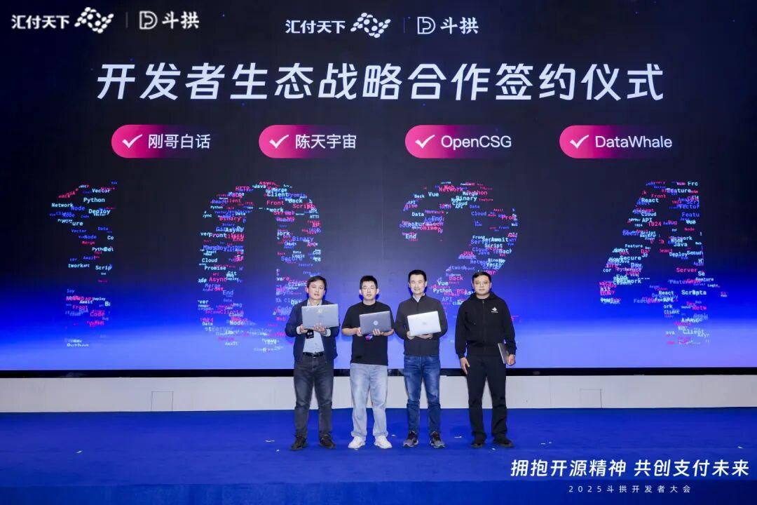 会上,OpenCSG、DataWhale等知名开源社区及陈天宇宙、刚哥白话等支付行业自媒体成为首批开发者生态战略合作伙伴。